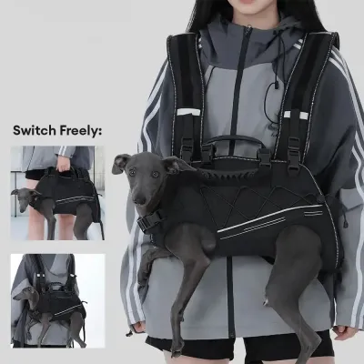 Rückenfreundlicher horizontaler Hundetragekorb mit verstellbaren gepolsterten Trägern - Beine-raus Komfort